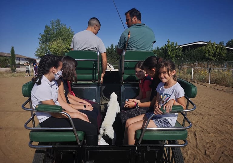 En verano lanzamos campamentos con actividades relacionadas con caballos y juegos al aire libre. Suelen tener horario de mañana entre semana; llámanos para fechas, edades y plazas disponibles.